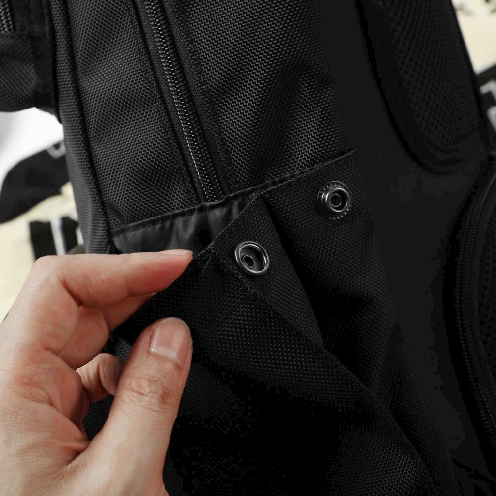 - Chất liệu cao cấp: Vải nhẹ, bền chắc, có khả năng chống nước, bảo vệ đồ đạc bên trong khỏi mưa nhỏ và ẩm ướt.