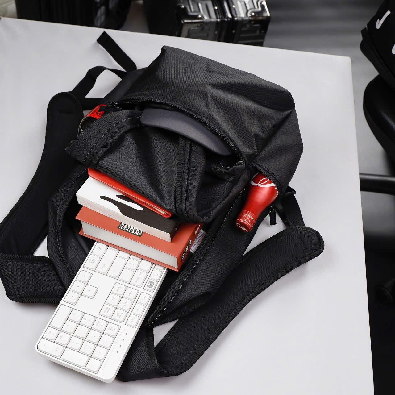 - Chất liệu cao cấp: Vải nhẹ, bền chắc, có khả năng chống nước, bảo vệ đồ đạc bên trong khỏi mưa nhỏ và ẩm ướt.